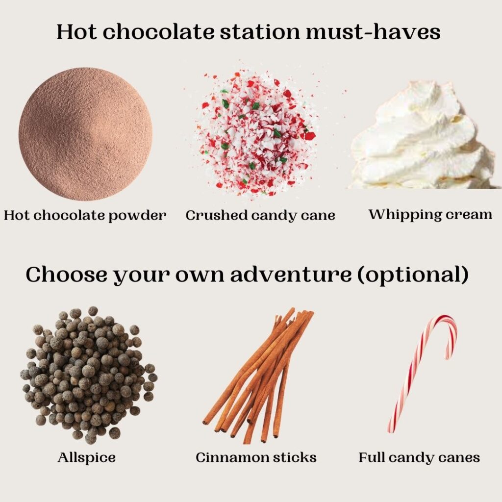 • The hot chocolate station mainstays I pick up every year are: